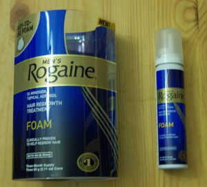 I hit the Styling Paste to spruce up this thin crow’s nest I’m calling my hair these days, and then an extra healthy spot of Rogaine Foam. Rogaine is the only one of my toiletries I have a heavy hand with – you never know. I now head for the brush to get my hair under control and give it a “look.” With my hair, I try to go for the “messy, cover-up” look to make it look thicker, but it usually just comes across as the “desperate, comb-over” look.
